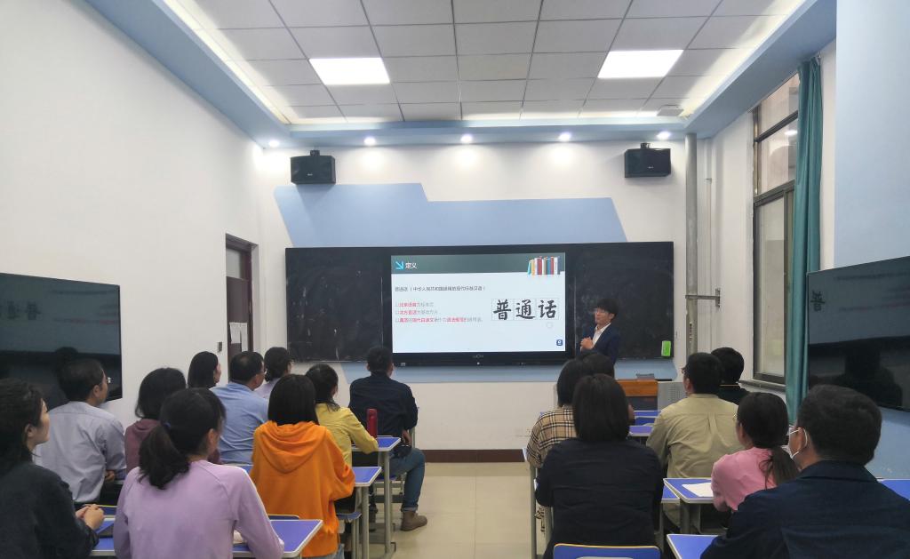 主讲教师孙文舟从普通话的基础知识、推广意义、提升方法三个方面进行了培训,对普通话语音的形成与发展、词汇的产生与消亡、语法的规范与改进等进行了详细讲解,阐明推广普通话工作的重要意义。随后,全体人员一起进行了普通话的发音训练,了解自身发音问题,讨论纠正训练方法。通过此次培训,航空工程学院教师对推普工作的重要意义有了新的认识,了解自身存在问题并找到了对应的提升训练方法,有力促进了系院内普通话推广工作的开展。