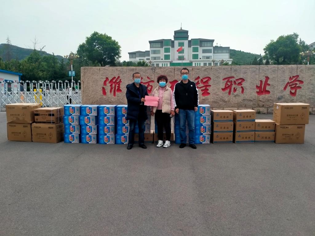 近日,2021级机电一体化技术03班耿子轩的家长向学院捐赠100瓶酒精,900瓶84消毒液,2000包口罩,价值13000余元,以实际行动助力我院的疫情防控工作。家长表示,在疫情防控期间,学院领导和辅导员老师积极做好疫情防控各项工作,为学生提供一个良好的学习环境。学生家长的义举是对学院防疫和教育工作的极大支持和鼓励,这批防疫物资将用于校园疫情防控中,让这份爱心发挥应有的作用。下步,机电工程学院将进一步夯实责任,多措并举做好日常防疫各项工作,做到疫情防控和教育教学两不误,全力做好师生在校的安全工作学习。