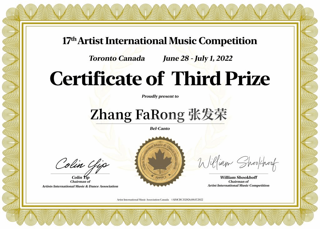 日前,第十七届“国际艺术家音乐比赛”在加拿大举行,我院教师张发荣获得美声组三等奖。
