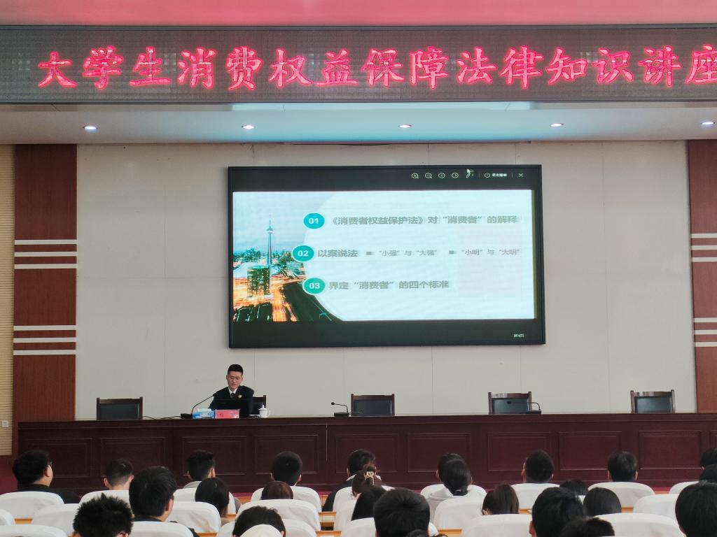 为普及消费者权益保护的相关知识,引导师生理性消费,树立正确的消费观和维权观,3月24日下午,法治办公室联合团委学生处在海岱阁学术报告厅组织开展了主题为“大学生消费权益保障”的法律知识讲座,300余名师生参加。本次讲座邀请青州市人民检察院颜璐检察官担任主讲人,讲座就消费者受损谁来赔、维权招式要牢记、消费者受损赔哪些、具体情境下的维权等方面进行了系统讲解,讲座过程中颜璐检察官结合日常消费实际,以案释法,以法论事,与同学们进行互动交流,现场气氛热烈。