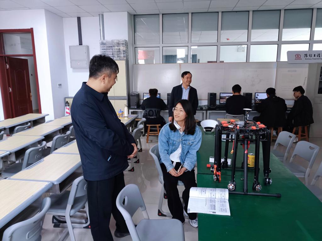 为了解无人机人才培养现状,促进“高精专”应用型人才培养,4月17日,山东省无人机技术与应用协会会长赵西军一行到机电工程学院调研。座谈中,机电工程学院负责人介绍了无人机应用技术专业的发展规模、人才培养、课程设置、技能大赛和学生实习就业等。赵西军表示机电工程学院无人机应用技术专业发展起步较早、规模较大,并对人才培养质量等给予了肯定。双方还就无人机行业和专业建设难点等进行了交流。机电工程学院将以此次活动为契机,在资源共建、技能大赛等方面与协会加大交流力度。