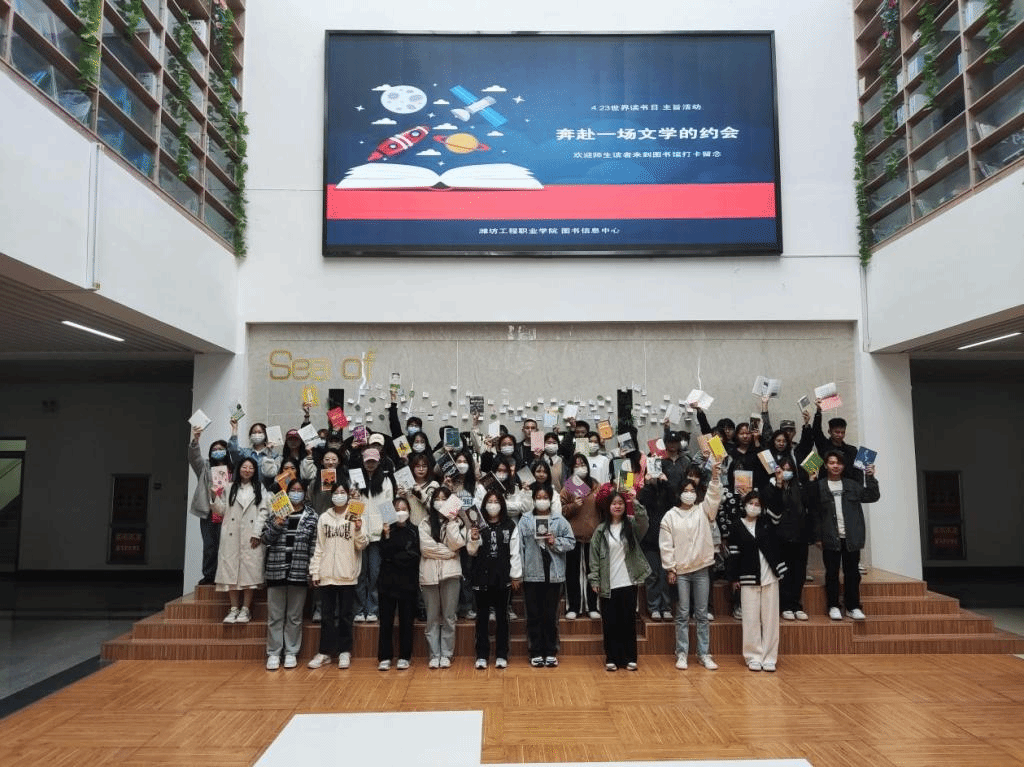 4月23日,图书信息中心在海岱阁综合阅览大厅举办了世界读书日主旨活动——“奔赴一场文学的约会”。活动当天,多名师生来到综合阅览大厅现场参与打卡。读者们分享自己在书籍上读到的美文佳句,并记录在各式彩色贴纸上,在阅览大厅的背景墙上进行了张贴。本次活动引导师生读者走进图书馆,激发了全校师生拿起书本、读著览文的热情,推动掀起全民阅读新风潮,推进建设书香校园。