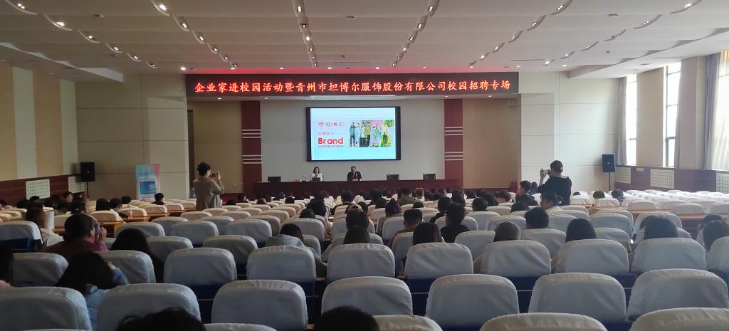 4月25日,商学院在报告厅组织开展企业家进校园活动暨青州市坦博尔服饰股份有限公司校园专场招聘。商学院和坦博尔相关负责人,以及商学院师生代表,农林科技学院、信息工程学院的学生代表300余人参加。活动中,企业负责人作“新零售助力数字化门店双增长”报告,从物流管理、营销策略、数据分析等方面介绍了产品研发设计数据全生命周期防线方案,围绕新零售业的市场格局、产业生态、运营特点等讲解了行业现状,分析了行业发展趋势。活动还进行了现场招聘,企业方根据需求结合学生专业特点制定了包括销售、成品检验、仓管、主播等共计77人的招聘计划,从岗位带教、梯队发展、破格晋升等多个方面介绍了员工培养模式。