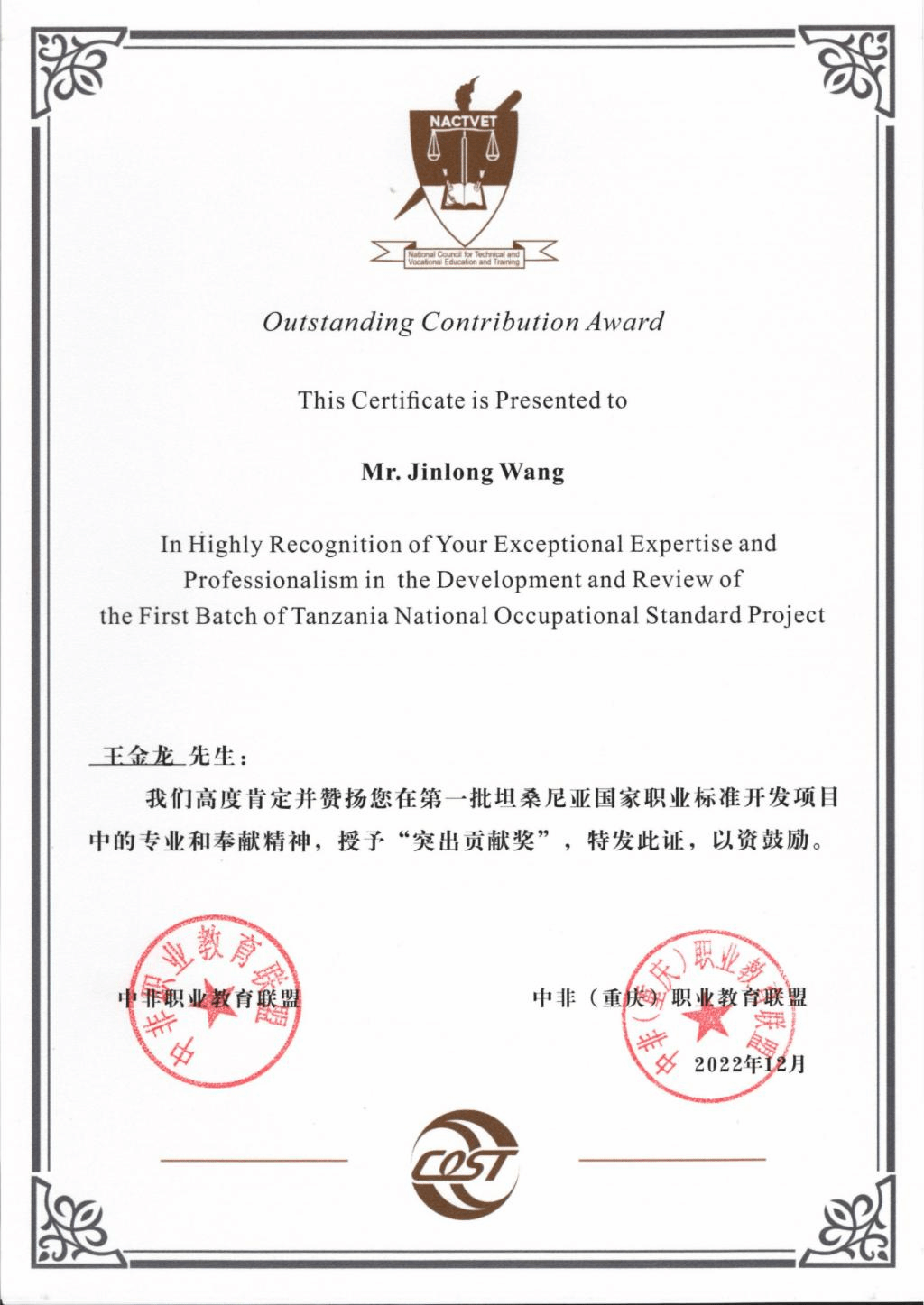 近年我校积极拓展合作路径,持续加大国际交流合作力度,学校国际影响力和国际化办学水平不断提升。去年信息工程学院独立完成“计算机工程技术员6级”职业标准以及配套专业教学标准顺利通过审核,获得官方认证,正式纳入坦桑尼亚职业教育体系。目前,我校参与的第二批坦桑尼亚国家职业标准开发项目“焊接技术员5级”职业标准已进入评审阶段。