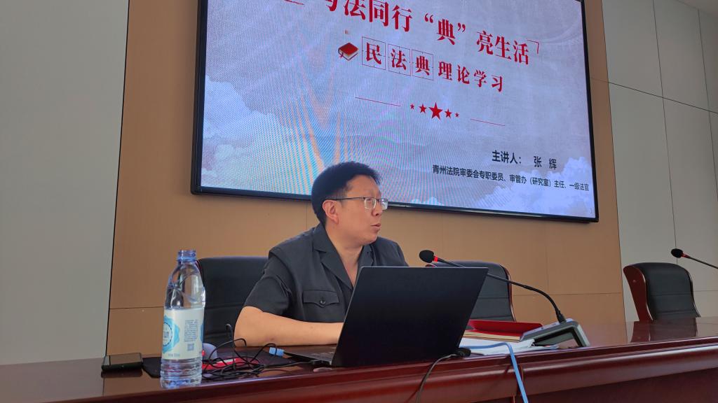 5月17日,中专教学部在学术报告厅举办“与法同行·典亮生活”民法典知识普及专题讲座。青州市人民法院审判委员会专职委员、审管办(研究室)主任、一级法官张辉受邀主讲。200余名学生干部和学生代表参加。