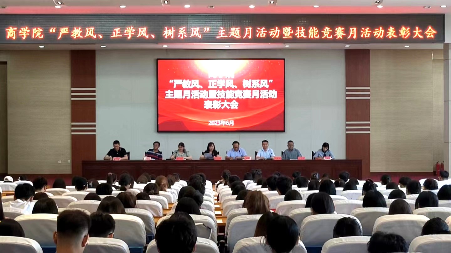 6月1日下午,商学院在报告厅举行“严教风、正学风、树系风”主题月活动暨技能竞赛月活动表彰大会。商学院主要负责人及全体教师、学生代表参会。