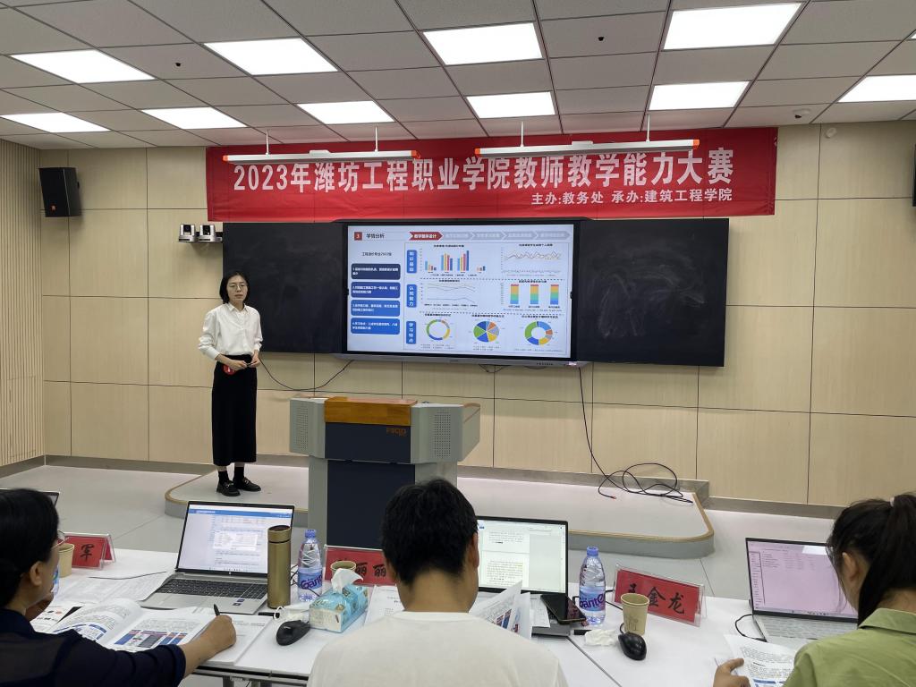 6月2日,教师教学能力比赛在立德楼303举行,本次比赛由教务处主办、建筑工程学院承办,面向全校教师全程线上直播。比赛设教学实施报告展示、无学生教学展示、专家现场点评3个环节。各参赛团队赛前进行了充分准备和设计,融入信息技术,比赛现场展现出了扎实的教学技能、进取的精神风貌和求实求新的教学态度。专家针对参赛团队的现场表现及参赛资料提出了改进意见,并鼓励大家以比赛为契机,认真打磨教学设计,突出学生本位,还原课堂本真,真正培养出高素质技术技能人才。